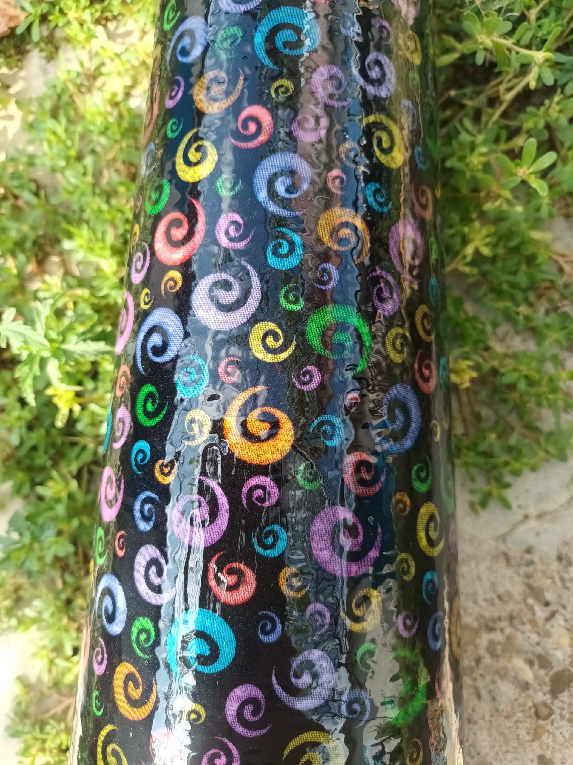 The artistic colourful swirls wrap is encased in many hand applied layers of epoxy resin and offers a super shiny look.